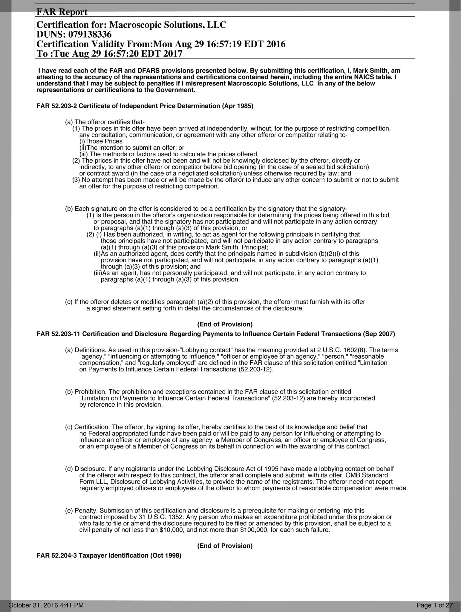 FAR Report