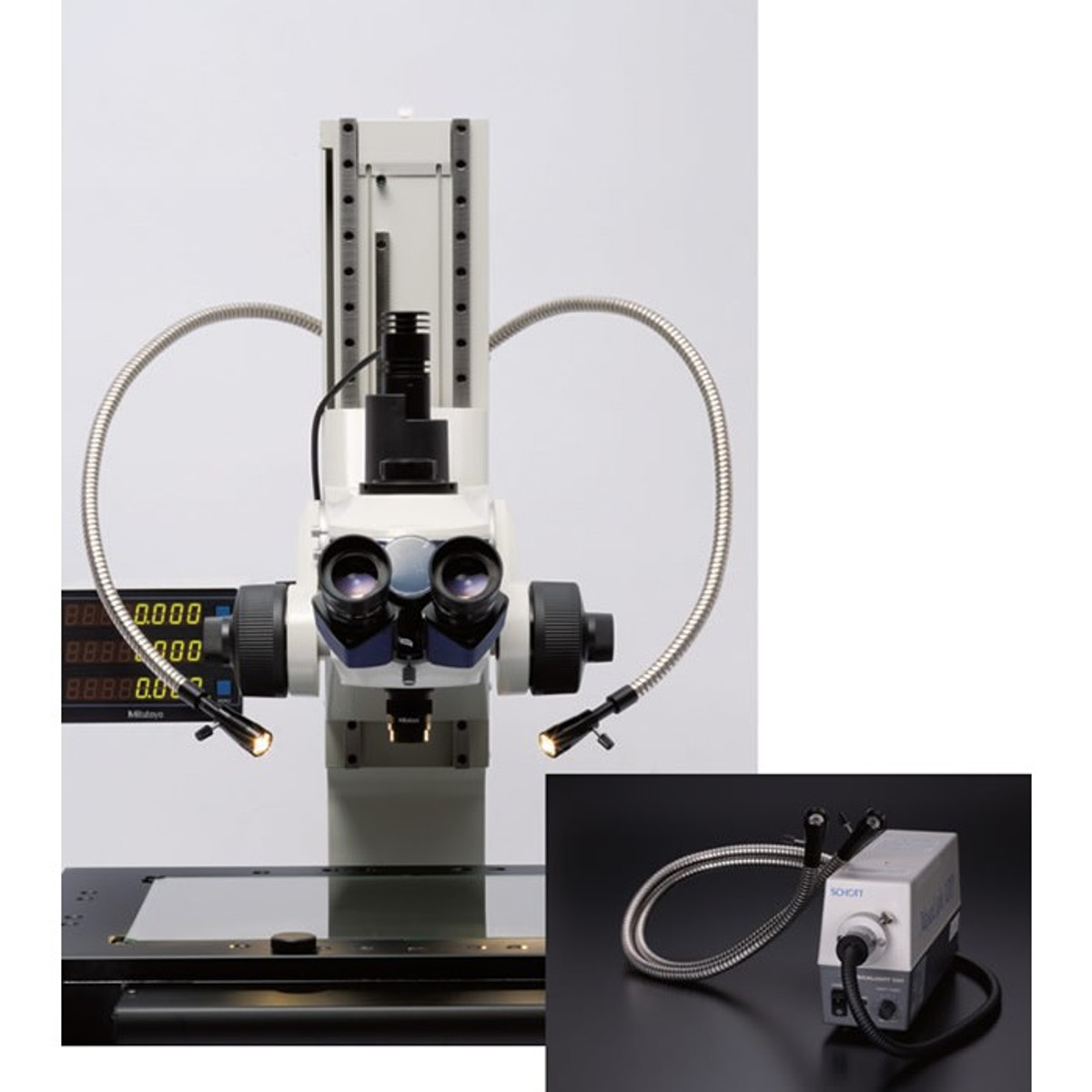 | Bifurcated Fiber Illuminator | Dual flexible fiber arms deliver directional incident light from two sides. Ideal when you need raking light to make burrs, scratches, edges, or stamped marks stand out.