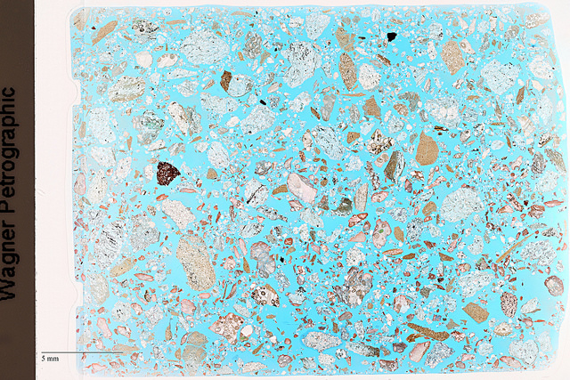In optical mineralogy and petrography, a thin section (or petrographic thin section) is a laboratory preparation of a rock, mineral, soil, pottery, bones, or even metal sample for use with a polarizing petrographic microscope, electron microscope and electron microprobe. A thin sliver of rock is cut from the sample with a diamond saw and ground optically flat. It is then mounted on a glass slide and then ground smooth using progressively finer abrasive grit until the sample is only 30 μm thick. The method involved using the Michel-Lévy interference colour chart. Typically quartz is used as the gauge to determine thickness as it is one of the most abundant minerals.